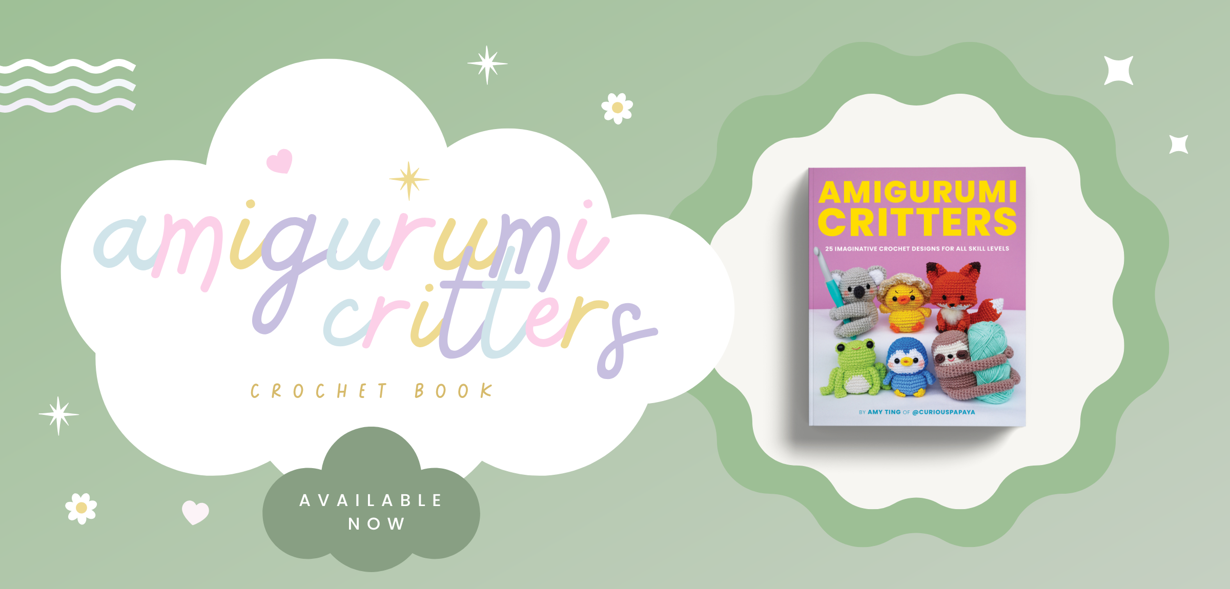Unleash your creativity, one stitch at a time! Whether you’re a total beginner or a seasoned pro, Amigurumi Critters by Amy Ting of @curiouspapaya is packed with everything you need to craft your own collection of adorable critters. These irresistible patterns range from simple and sweet designs to more advanced masterpieces.